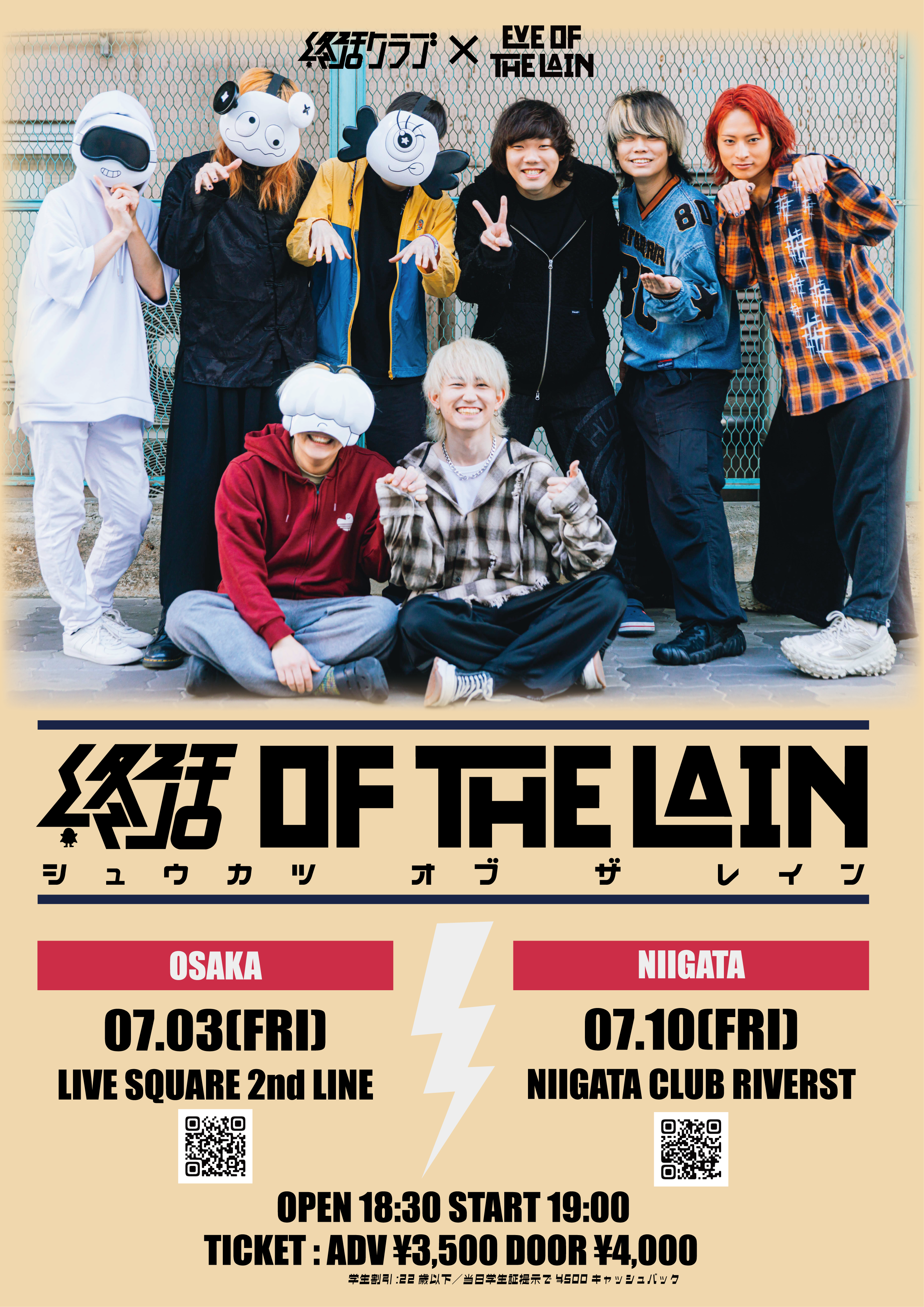 【学割:22歳以下対象】 ライブ当日受付にて学生証提示された方500円キャッシュバック。