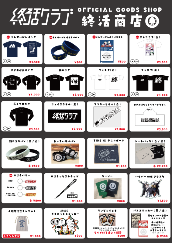 各ライブ公演会場の終活クラブ物販ブースにて販売しております。