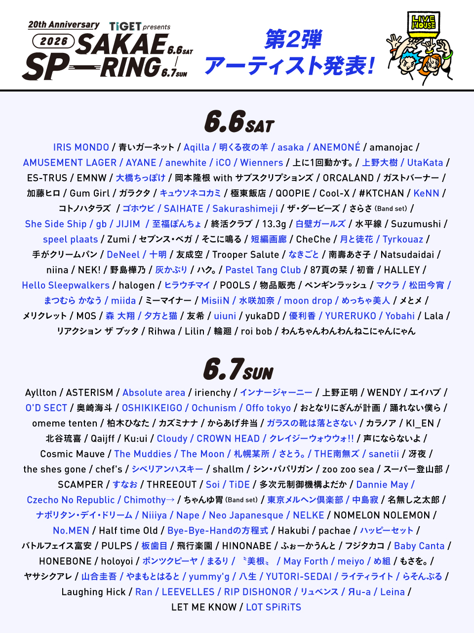 DIAMOND HALL / NAGOYA ReNY limited / NAGOYA CLUB QUATTRO / RAD HALL / SPADE BOX / HOLIDAY NEXT NAGOYA / RAD NINE / 新栄シャングリラ / R.A.D / RAD SEVEN / CLUB ROCK'N'ROLL / Live & Lounge Vio / TIGHT ROPE / CIRCUS / HeartLand / CLOVER HOUSE / sunset BLUE / NSM EVENT HALL and more…