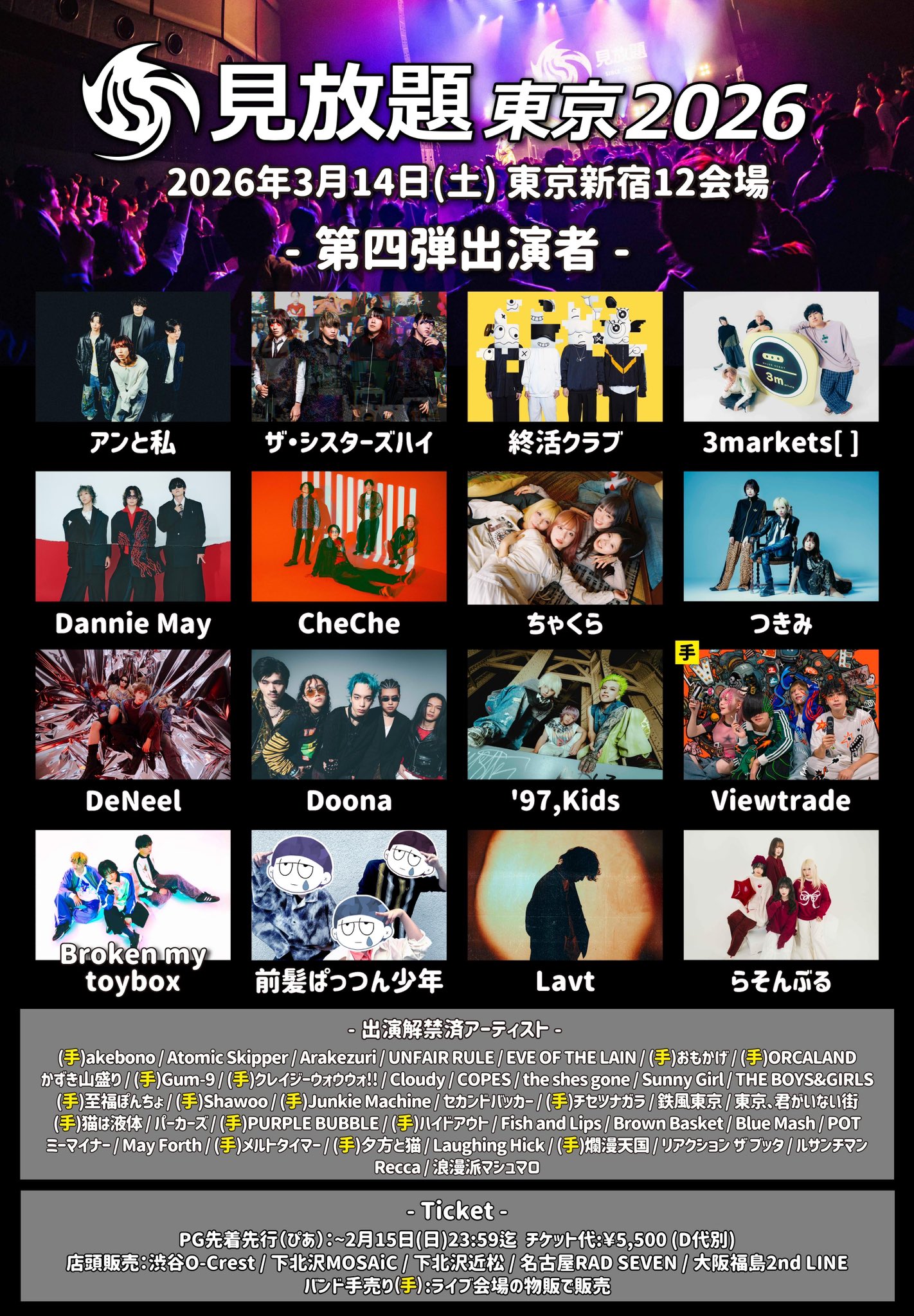 EVE OF THE LAIN / ORCALAND / Gum-9 / the shes gone / セカンドバッカー / パーカーズ / Fish and Lips / ミーマイナー / 夕方と猫 / Laughing Hick / リアクション ザ ブッタ / 浪漫派マシュマロ / akebono / おもかげ / クレイジーウォウウォ!! / 至福ぽんちょ / Shawoo / Junkie Machine / チセツナガラ / 猫は液体 / PURPLE BUBBLE / ハイドアウト / メルトタイマー / 爛漫天国 / Atomic Skipper / Arakezuri / UNFAIR RULE / かずき山盛り / Cloudy / COPES / Sunny Girl / THE BOYS&GIRLS / 鉄風東京 / 東京、君がいない街 / Brown Basket / Blue Mash / POT / May Forth / ルサンチマン / Recca / アンと私 / ザ・シスターズハイ / 終活クラブ / 3markets[ ] / Dannie May / CheChe / ちゃくら / つきみ / DeNeel / Doona / ’97,Kids / Viewtrade / Broken my toybox / 前髪ぱっつん少年 / Lavt / らそんぶる